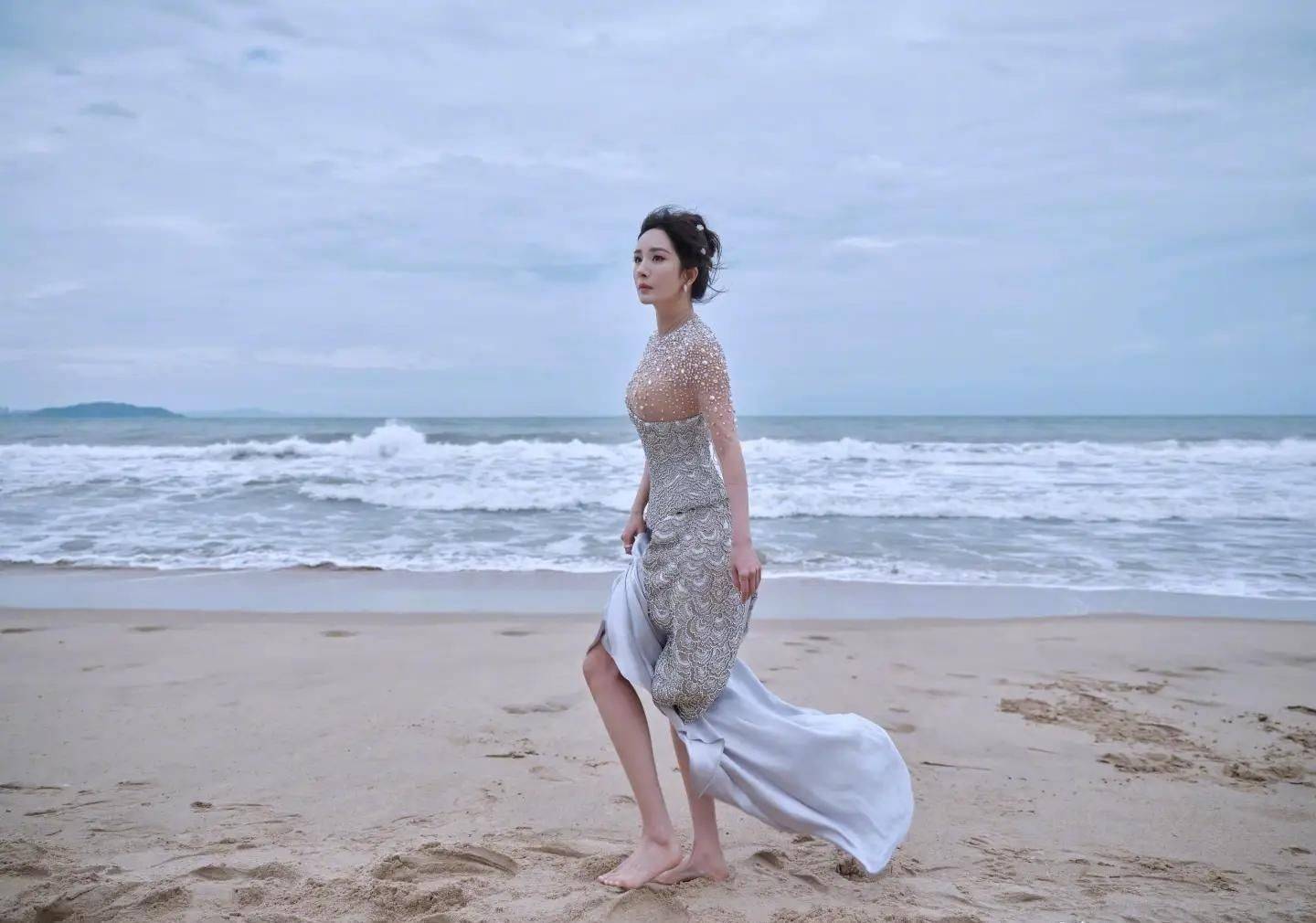 置身于碧海蓝天之间,整个人仿佛是从深海游上岸的神秘美人鱼,仙气与野性并存。