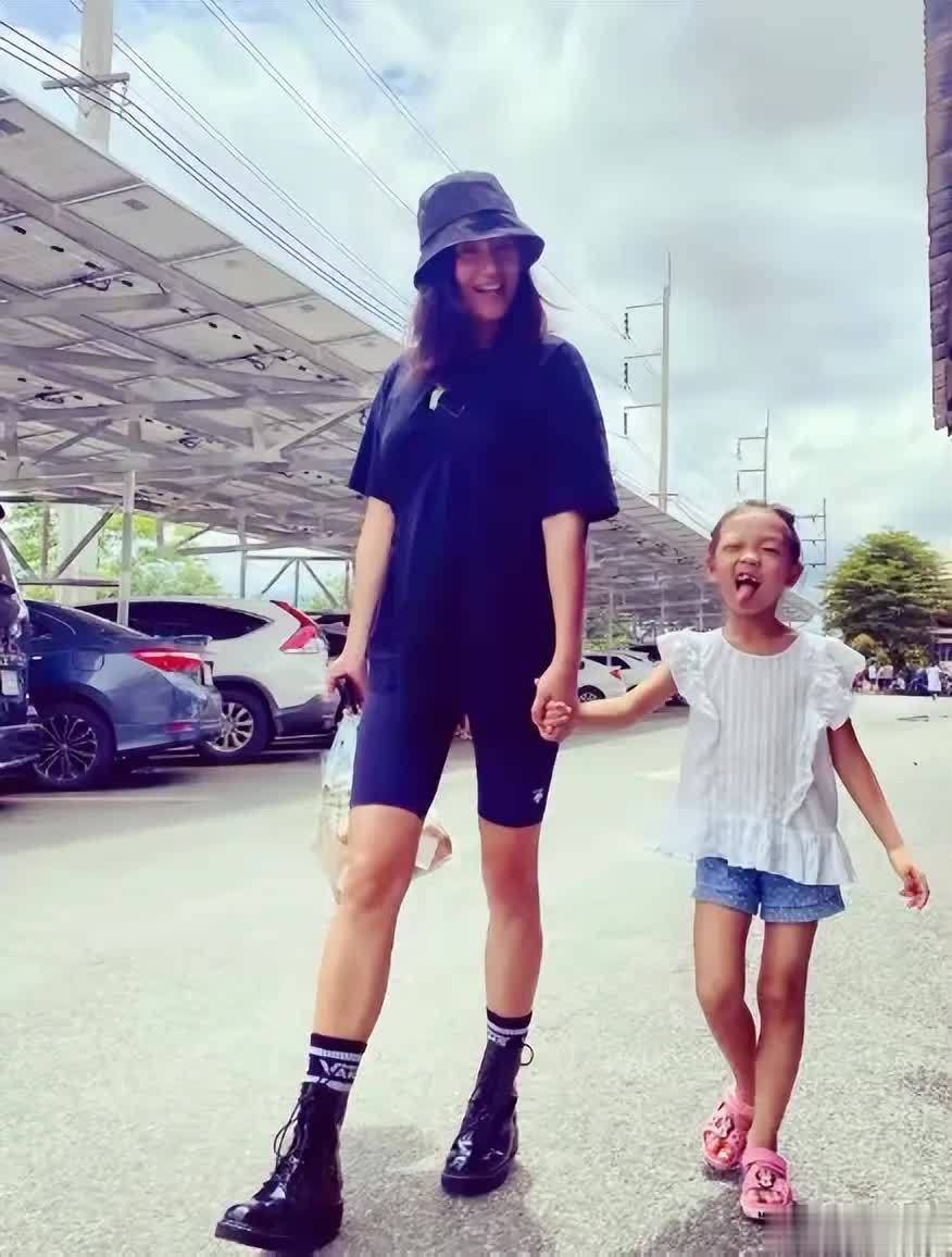 瞿颖陪着男士一起接女儿,还牵着小女孩的手、表现的非常亲密。