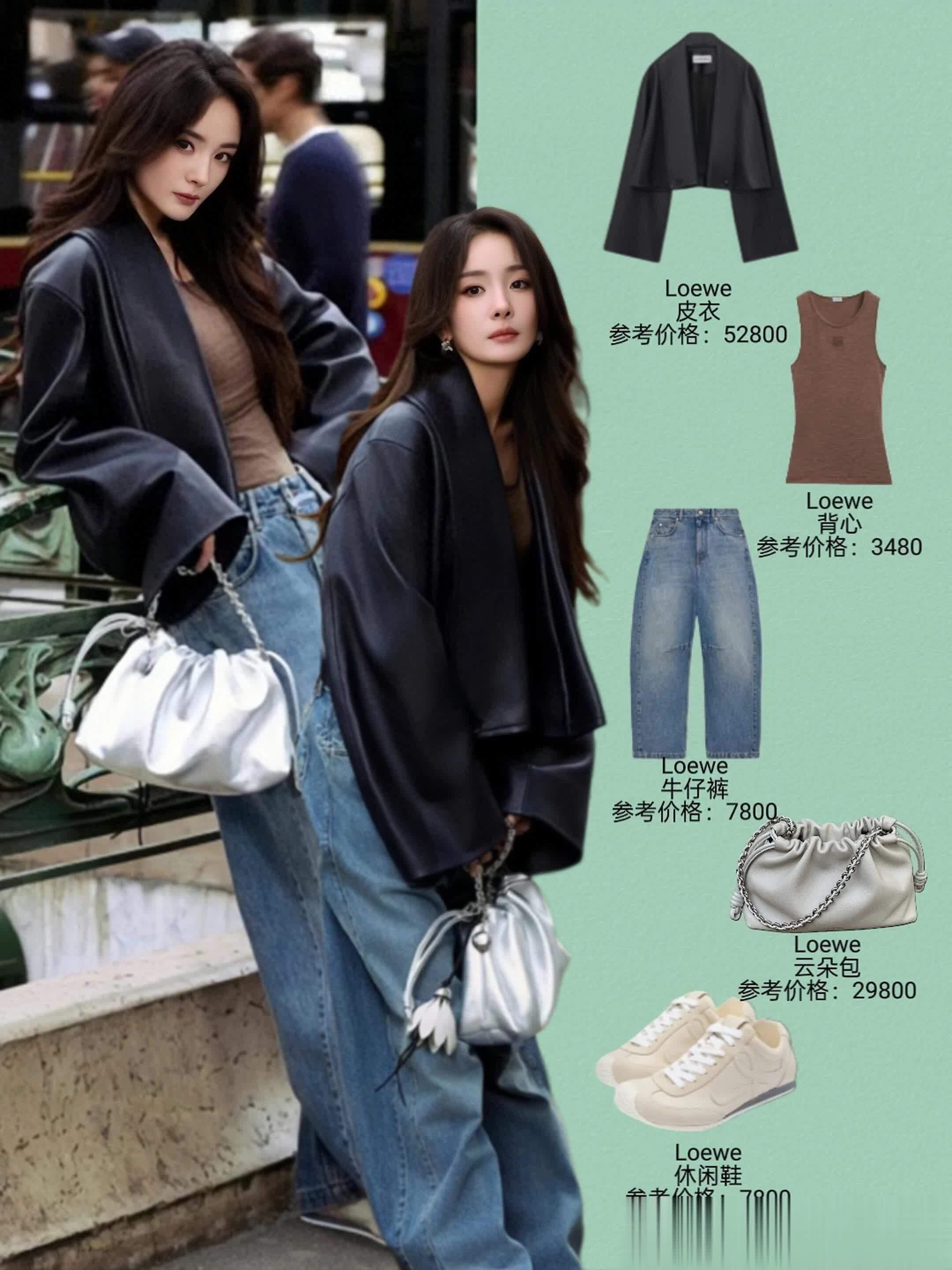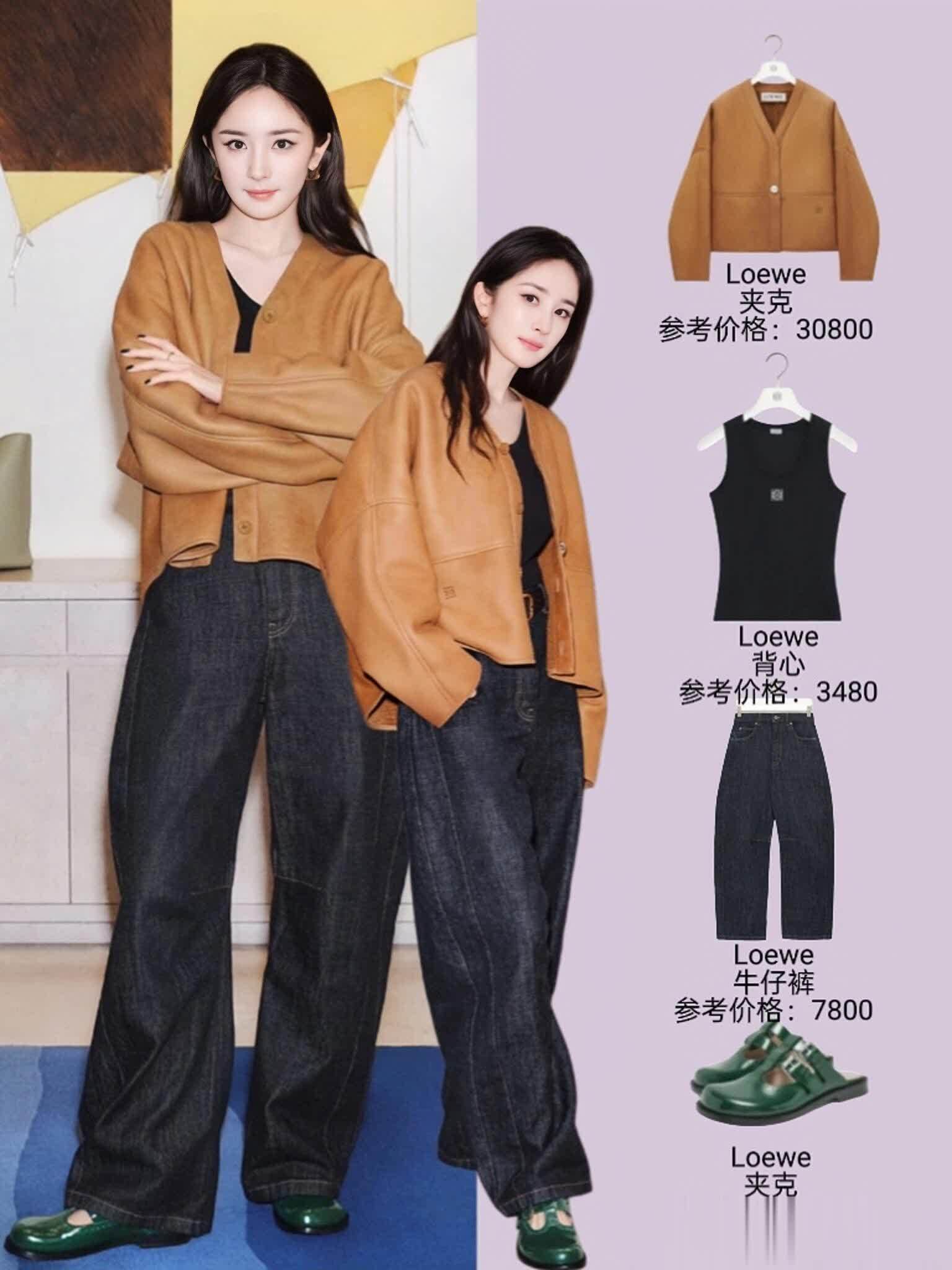 还有配饰的搭配也很绝!杨幂戴了条细金项链,和整体的休闲感融合得恰到好处,不浮夸还提气色;头发自然披散着,发尾带点微卷,被风一吹跟着飘,氛围感绝了。要是天气冷,再搭件同色系焦糖棕围巾,围巾边缘故意留毛须边,和夹克的绒感呼应,层次感一下就出来了~