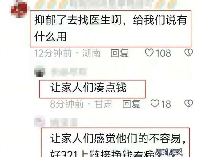 ?????? 评论区风向也一改以往对寻亲家庭的关怀,充斥着冷嘲热讽:“抑郁症复发不是给医生说,而是给网友说”“你就直接说:321,上链接吧”等。