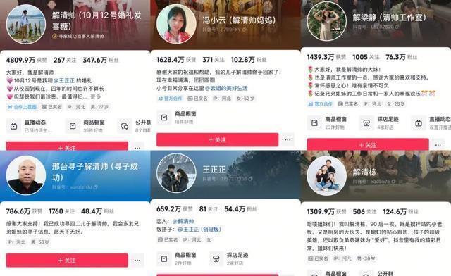 ?????? 在这些网友看来,以解清帅为代表的“寻亲网红”过度将苦难叙事商业化,既消耗了公众对寻亲群体的同情心,也让寻亲公益生态受到冲击,间接导致这类公益网站“难以为继”。?????? 据悉,年底全网关注的认亲事件落幕不久后,解清帅便在抖音平台开启直播带货,首场直播销售额便突破千万元。此后,其家人也纷纷开通账号,加入直播带货行列。