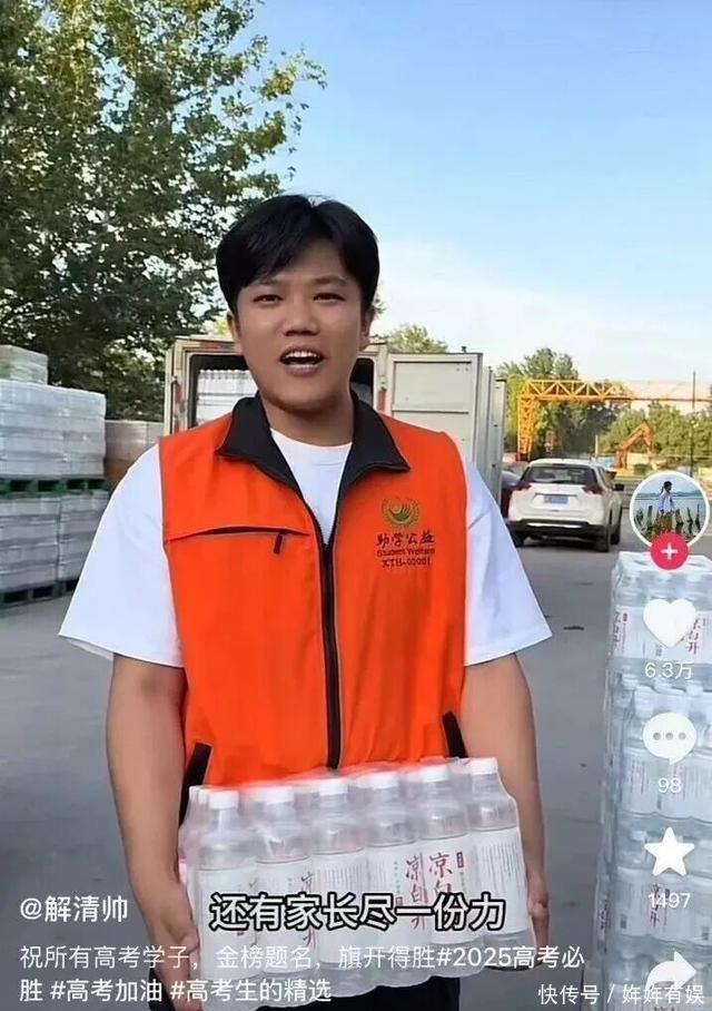?????? 彼时,解清帅面对外部质疑公开回应称:?????? “其实我做的内容,是记录真实的生活。我也不会拿这个事(妈妈生病)去做流量或者什么,就像那些评论里说的,我当时就是想单纯的记录生活?!?????? 而解清帅引发的争议却远不止于此。今年高考期间他还发布了一段视频,画面中他穿着助学公益服,手中提着一打名为“凉白开”的瓶装水,表示想为考生和家长尽一份力,已采购一批水送往各个考点。