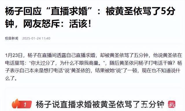 ?????? 之后杨子也在直播中回应此次求婚是“独立策划的剧本”,是想悄悄给黄圣依一些仪式感。?????? 而在求婚结束之后杨子被黄圣依骂了五分钟,指责其不事先商量。
