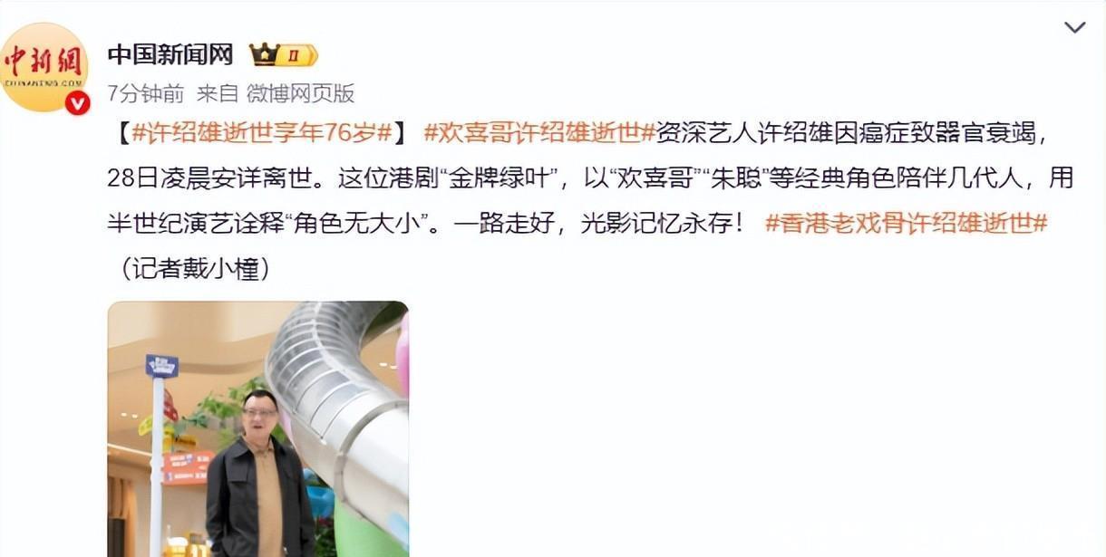 今天凌晨,76岁的许绍雄走了。消息传来时,很多人都没反应过来——就在前一天,还有人在社交平台刷到他女儿分享的亲子游戏视频,画面里笑声不断,谁能想到生死只隔了一夜。医院那边说是癌症引发的器官衰竭,其实早有征兆,只是他从没对外多说一句。