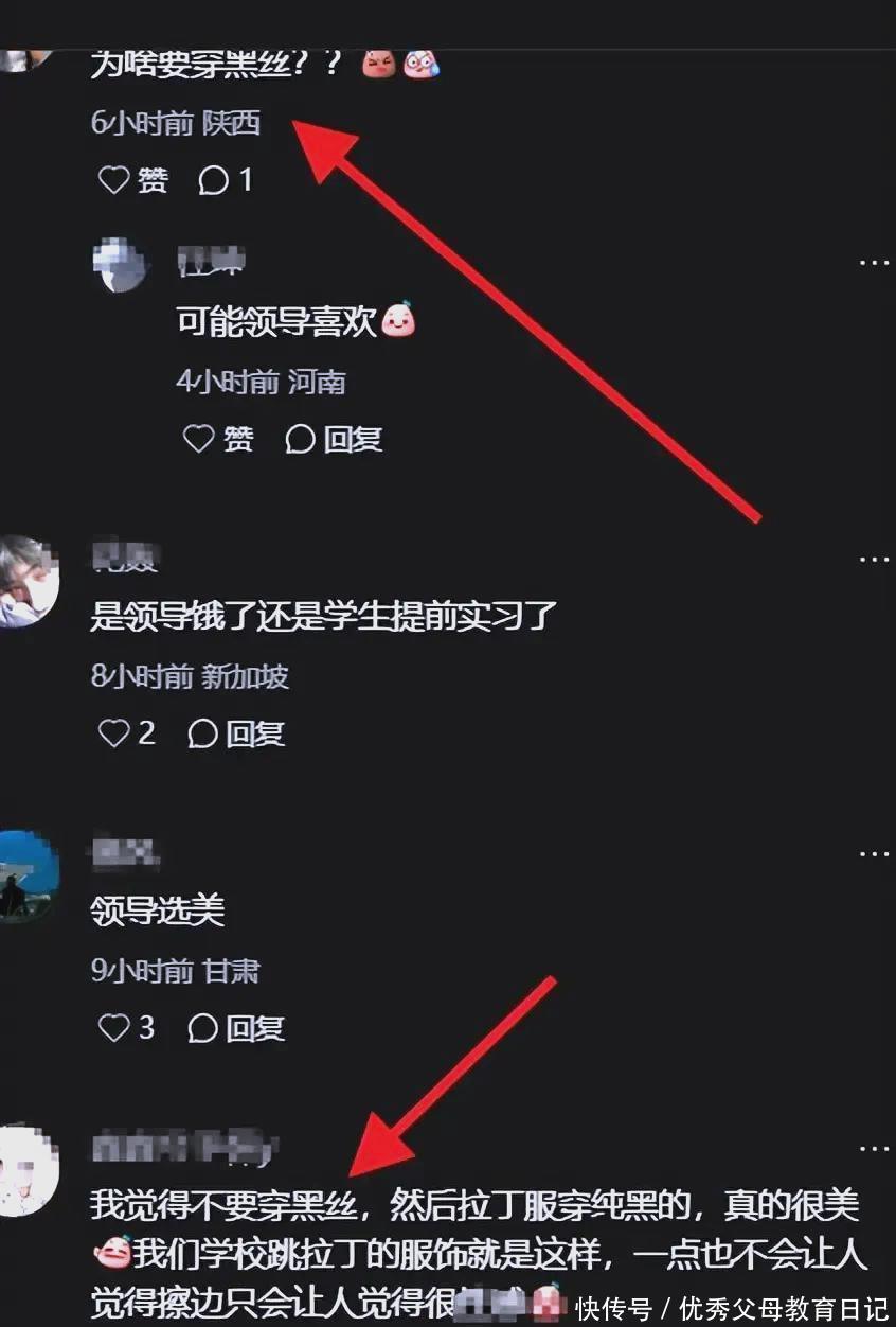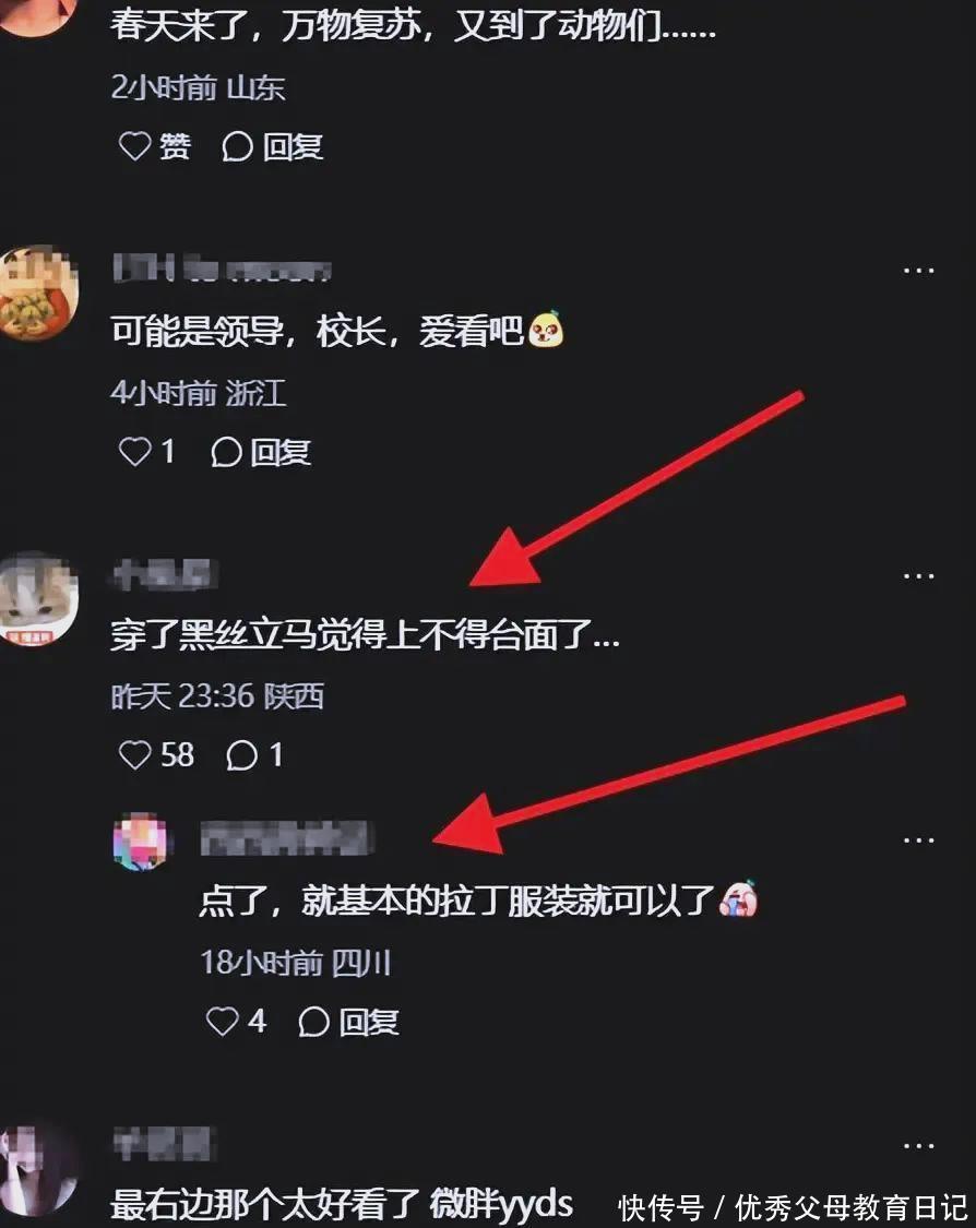 但是就由于她们腿上套着这个紧紧的黑色的丝袜,一下子就把整体水平弄的不对了。看到那个黑色的袜子,家长们纷纷皱起了眉头。