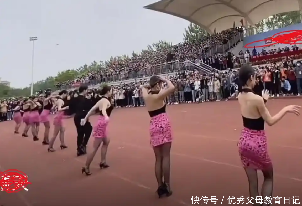 比较守旧的家长看到这里的时候就已经觉得不那么合适了。但是看到这个大学操场的场面,立马就有很多人提出了反驳的声音。