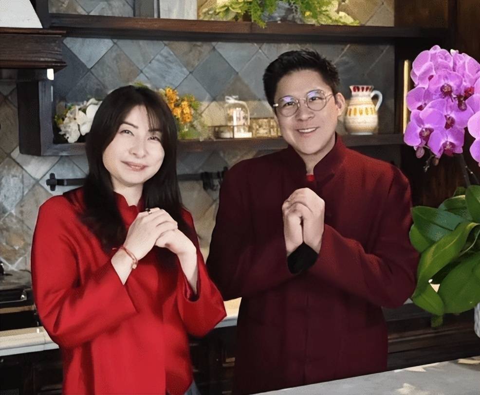 霍启刚、郭晶晶一同向大家拜年,笑容满面,心情愉悦。
