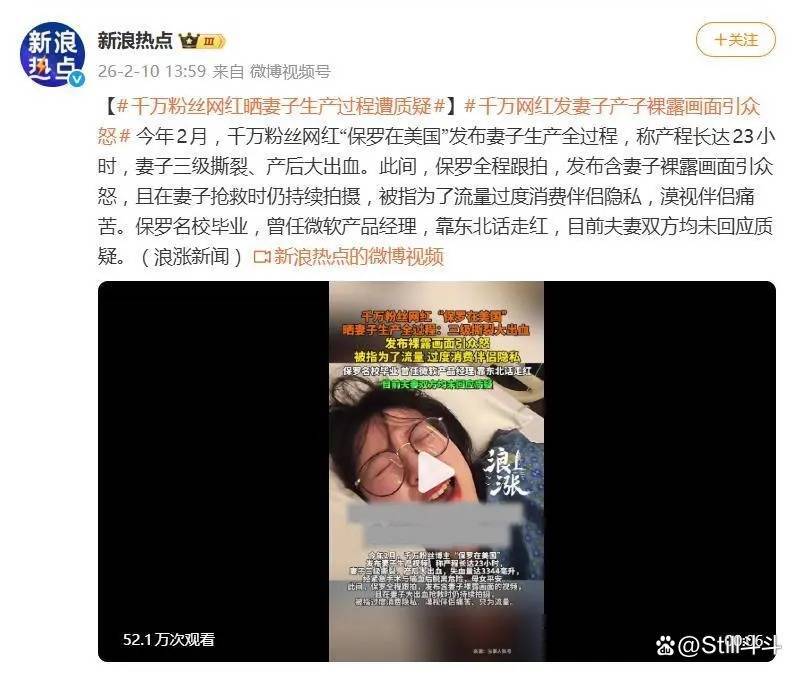 “我们是自愿记录的?!?#38754对全网声讨,保罗和妻子的回应轻描淡写。他们强调拍摄经过双方同意,甚至获得了医院许可,却避而不谈视频里那些打了码却依然触目惊心的血腥画面。有妇产科医生在社交平台科普:“三级撕裂的缝合过程需要极度专注,家属在旁拍摄可能干扰无菌操作。”更让网友愤怒的是,保罗在声明里反复强调“妻子全程参与审核”,却对妻子产后虚弱到无法下床的事实绝口不提。当流量成为衡量一切的标尺,爱情似乎也被明码标价——这条争议视频发布后,保罗的带货佣金暴%,评论区却充斥着“消费苦难”“毫无底线”的骂声。