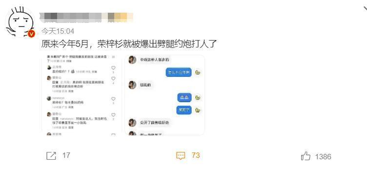 这些记录中又曝出了荣梓杉个劣迹。