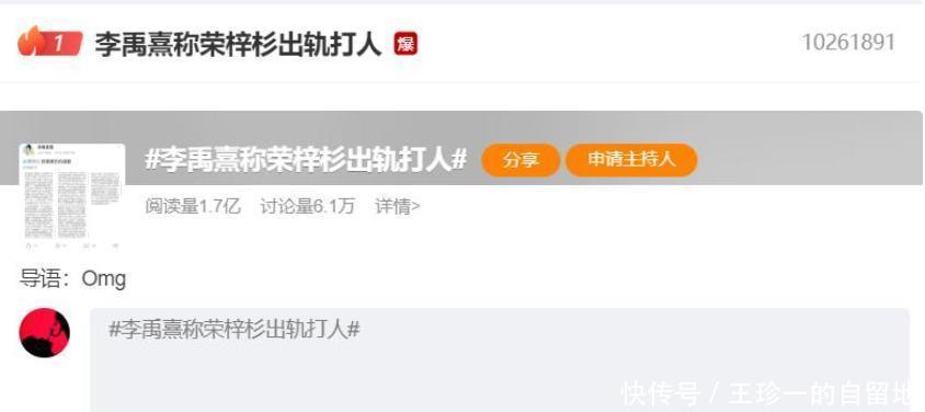 李禹熹的长文一发布,荣梓杉就登上了热搜第一,网友热议不断。