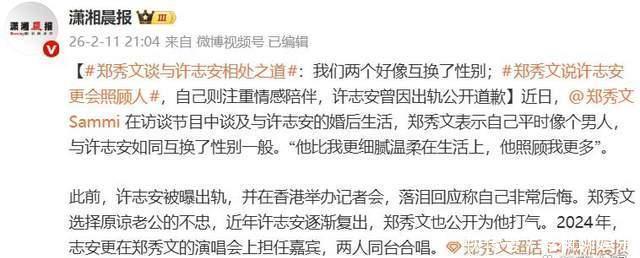 据媒体报道,近日在访谈节目中,郑秀文首次深入剖析与许志安复合后的婚姻状态,一句“我们的相处像是互换了性别”,揭开了这段历经风雨的关系中,更为私密与颠覆的互补图景。身边好友得知他们复合后,“都替她开心”,而这开心的背后,是一场关于照料、原谅与角色重塑的漫长跋涉。