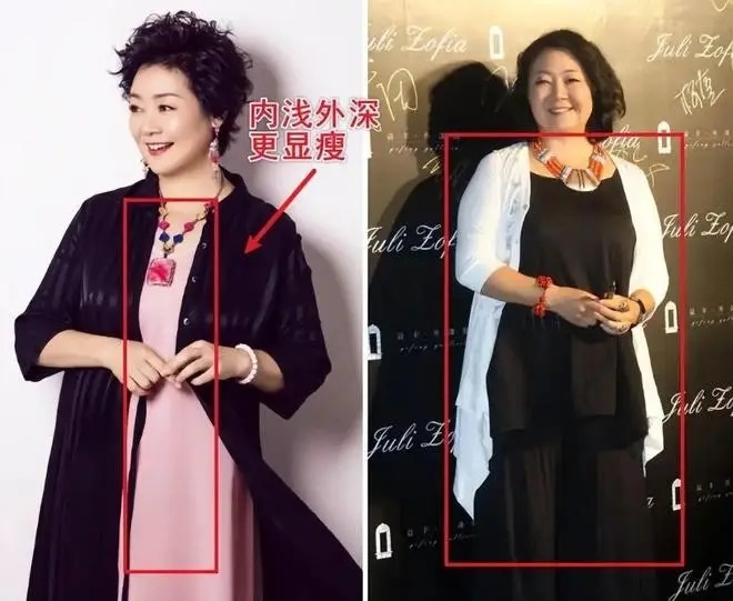 学会配色技巧很关键,大色块覆盖时,建议采用“内浅外深”法则,既能增加层次感,又能削弱臃肿感,视觉上显瘦。