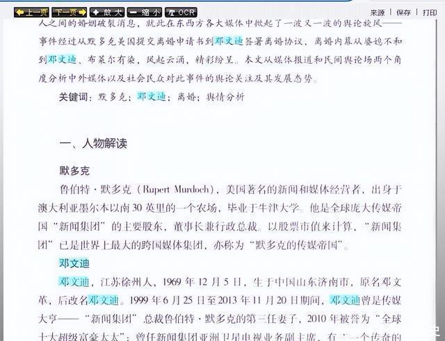 ?????? 在飞机上她坐新闻集团董事布鲁斯·丘吉尔旁边,聊起商业,丘吉尔印象深,帮她进香港卫星电视公司当实习生。她用中英双语处理文件,很快就站稳脚跟。1997年,新闻集团老板鲁伯特·默多克来中国访问,她被挑中当翻译。?????? 那趟上海北京行,她负责口译,默多克当岁,已和第二任老婆安娜分居。默多克对她有好感,但她起初没答应,觉得风险大。默多克坚持,1999月和安娜离婚,6日他们在洛杉矶游艇上结婚。岁,岁,这桩婚礼让邓文迪一夜成传媒圈名人。?????? 外界开始议论她靠魅力上位,野心不小。婚后头几年,她在家带孩子,但安娜离婚协议里设了障碍:邓文迪得生孩子才能分财产。默多克早年手术后不能生育,但有冷冻精子。
