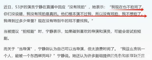 ?????? 随着年龄增长,宁静接的戏渐渐少了。?????? 面对外界疑问,她的回答相当直接:?????? “他们根本演不过我……现在没有特别牛的戏不要找我?!?????? 这话听着傲气,却透着底气。?????? 以她的演技和地位,确实有资格这么说。