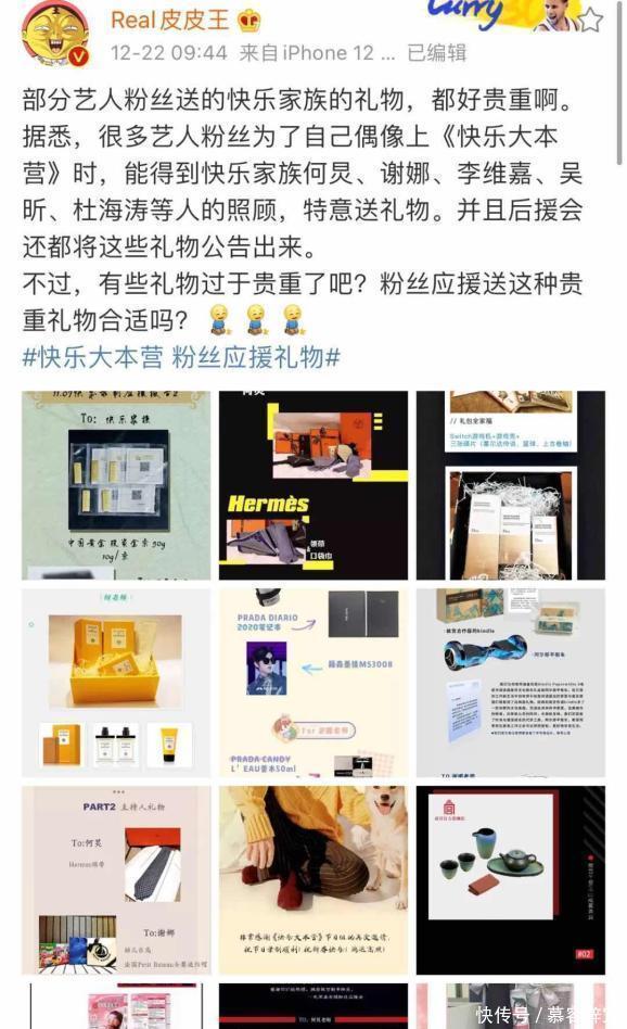 ?????? 有网友曝光,《快乐大本营》录制现场外,粉丝为了让偶像得到更好的待遇,会给主持人送各种贵重礼物。?????? 从名牌包包、手表到高端护肤品,甚至还有现金红包,礼物清单让人震惊。
