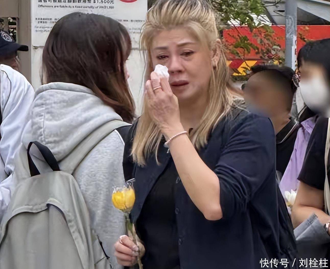 若你在那日的现场,目睹那位披金色长发、身深色衣衫、在人群边际默默垂泪的女子,或许不会料想,她曾经是TVB的香香公主,60岁的梁艺龄,此刻却好似被突如其来的情绪所击中,捧那朵黄色的花儿,整个人几乎站立不稳。皱巴巴的纸巾她紧紧攥,不停地往下掉的泪水。