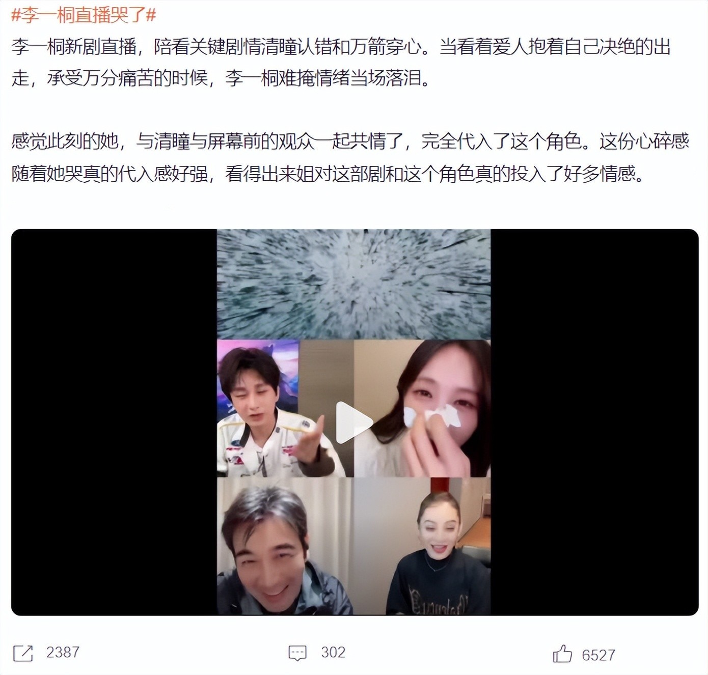 看到李一桐落泪,我们可以感受到她完全代入清瞳,从这点上看,李一桐饰演清瞳的时候,投入太多的情感,随后“李一桐直播哭了”话题登上热搜,看到这一幕,有网友想到《七时吉祥》播出的时候,丁禹兮和杨超越直播,当时杨超越也忍不住落泪。