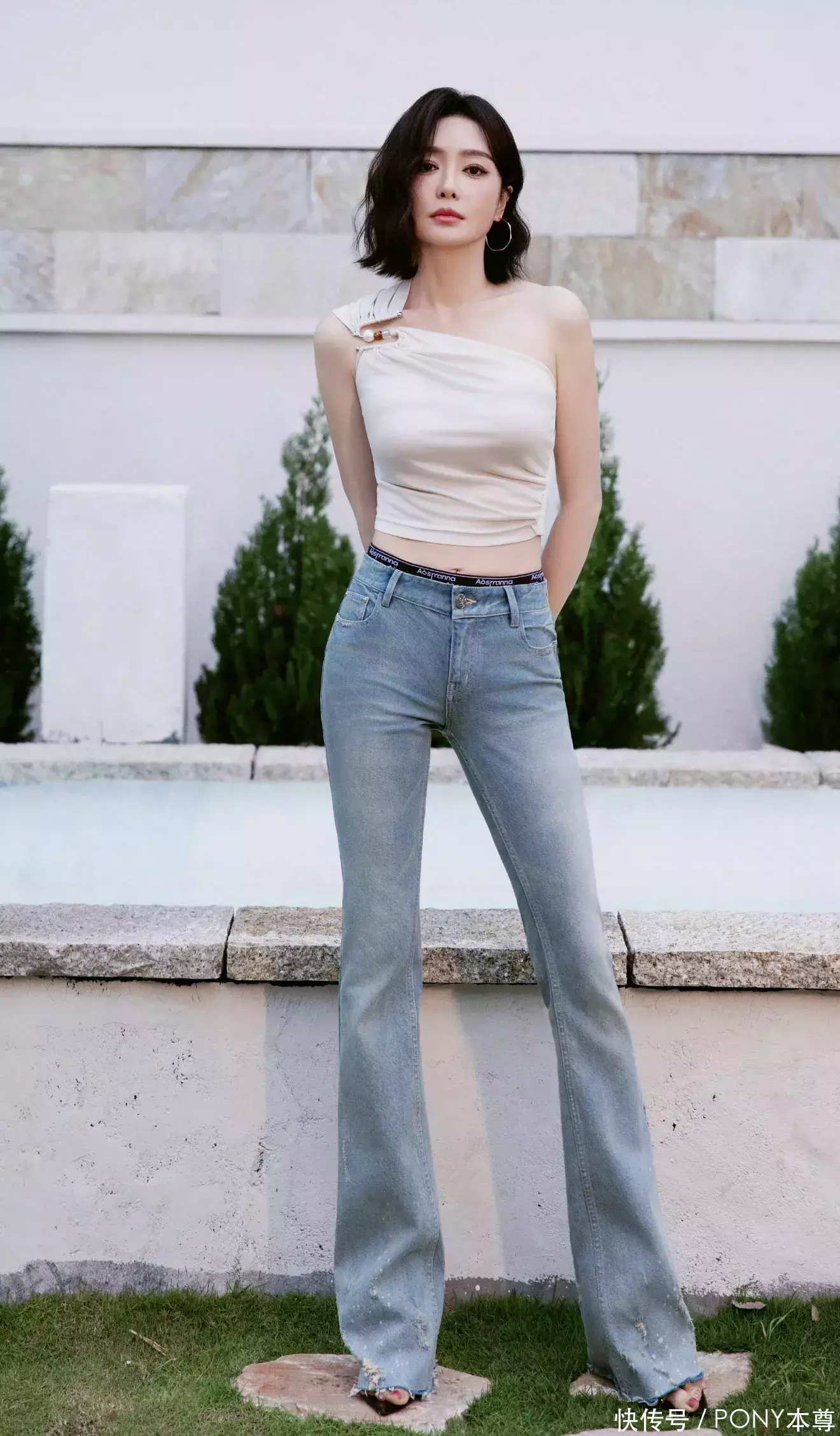 斜肩短上衣,展现优越肩颈线!45岁的秦岚这身材真是没得挑!常年坚持健身的她,胳膊纤细,毫无赘肉,背部也是曲线明显,薄薄的很有少女感,在穿无袖背心或者单肩上衣时,纯欲感拉满!所以中年女性还是得瘦啊!