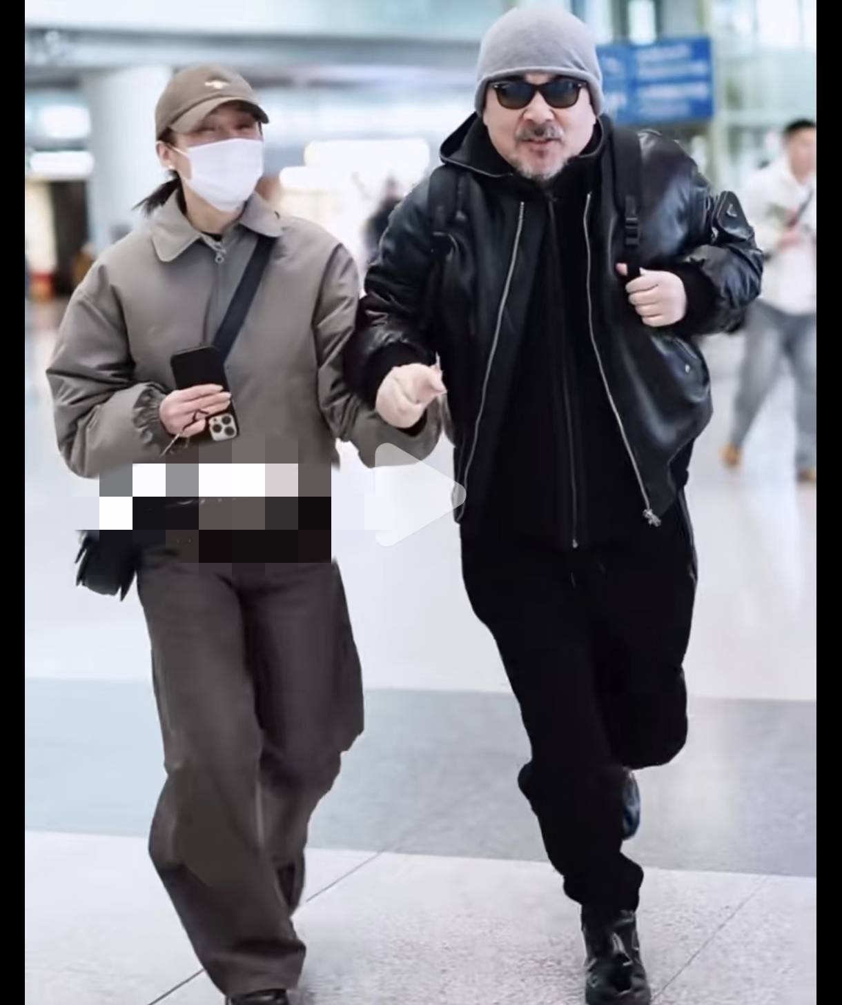 不过有网友看了他们夫妻俩的机场路透图,也觉得特别搞笑,不知道的还以为陈建斌单开了大头特效呢。