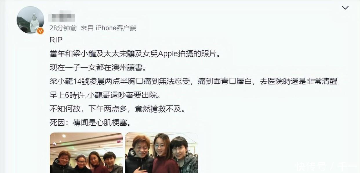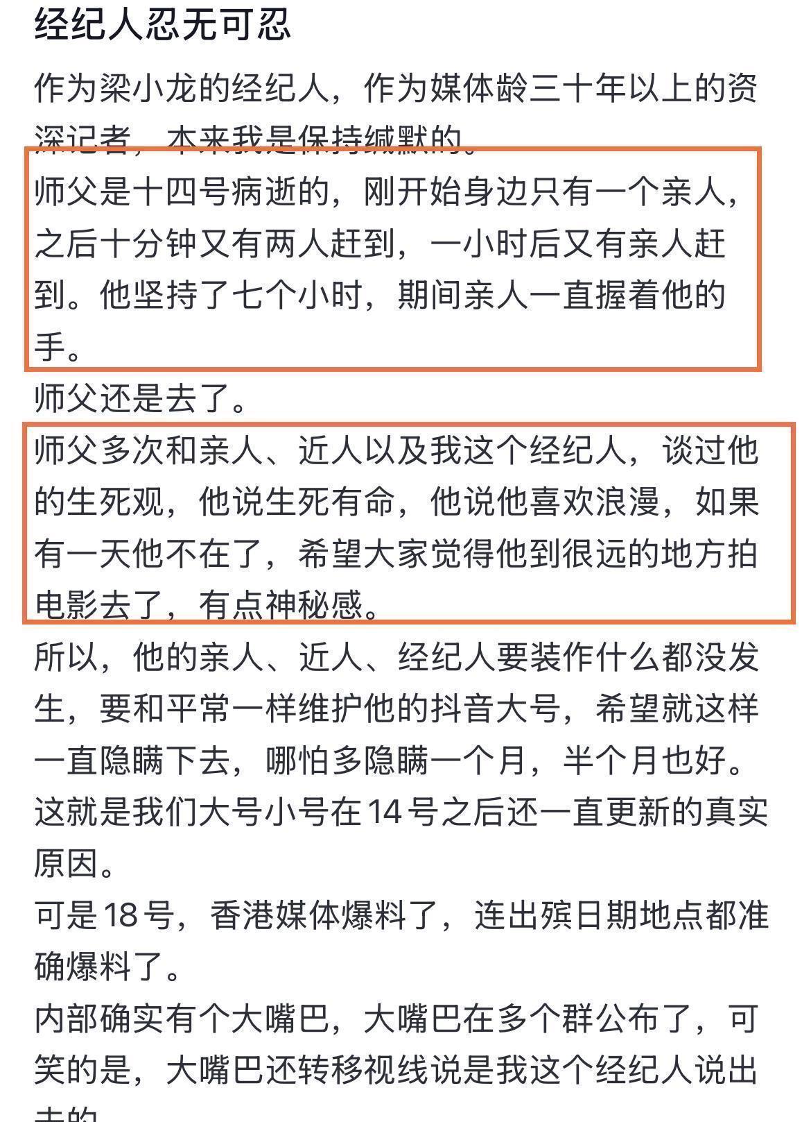 昨天,港媒突然曝出知名武打明星梁小龙去世的消息,时间号,出殡的日子定在这个号。紧接着,有网友注意到,梁小龙的个人视频账号还在持续更新,大家就开始产生疑问了。