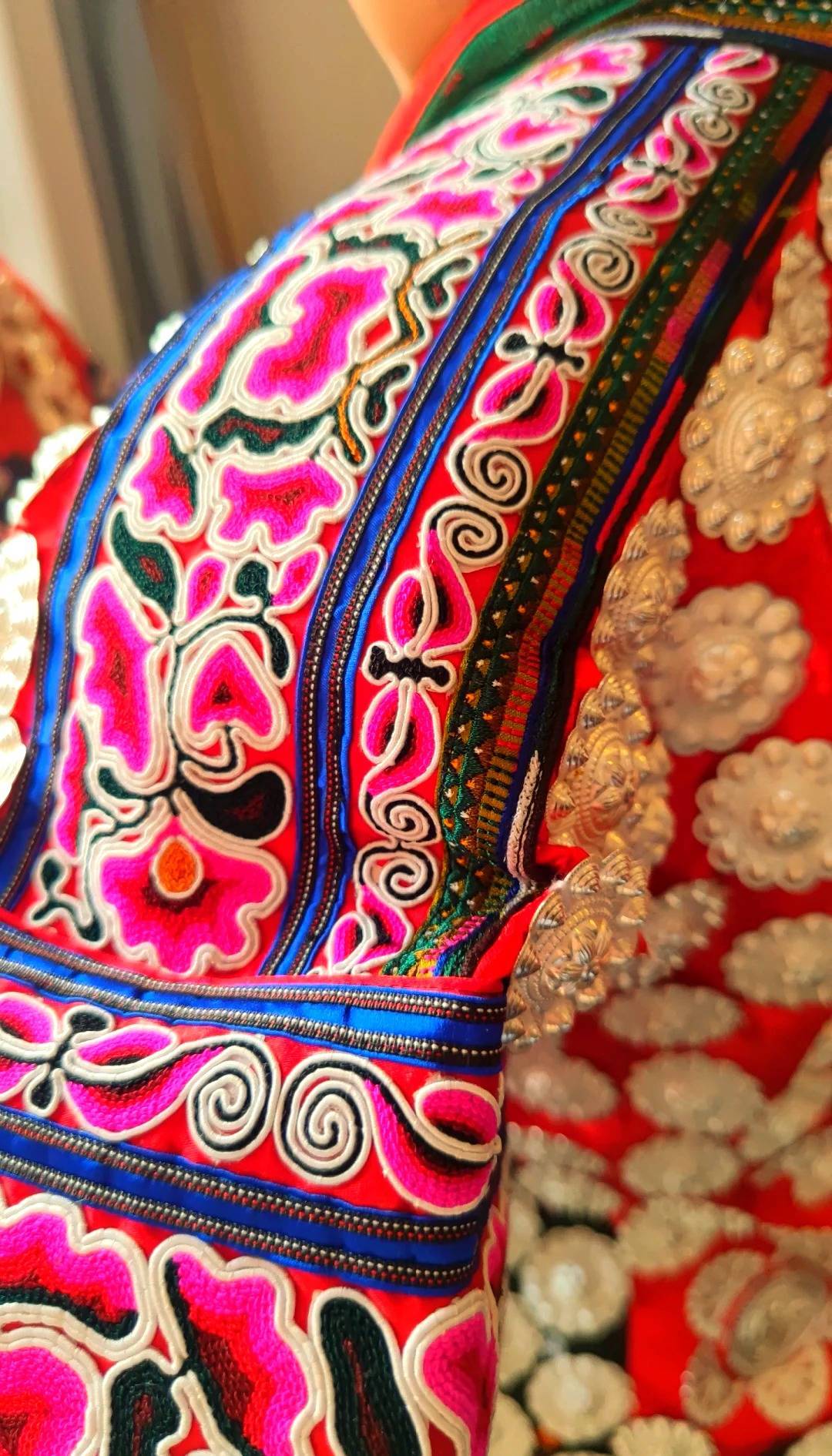 婚礼那天,当陶倩穿上这套重约五斤的嫁衣,全村人都来围观。阳光透过芦笙柱,在她裙摆上投下流动的光斑,母亲突然红了眼眶:“这针脚里啊,全是我的心跳?!?#21407来苗族母亲绣嫁衣有个规矩,每绣完一段就要对着布料轻呵一口气,把自己的气息和祝福封进布里。陶倩摸着衣襟上凸起的纹路,突然明白为什么每次妈妈绣到深夜,总会把脸贴在绣布上静静待一会儿——那是母亲在把自己的温度,缝进女儿的未来。