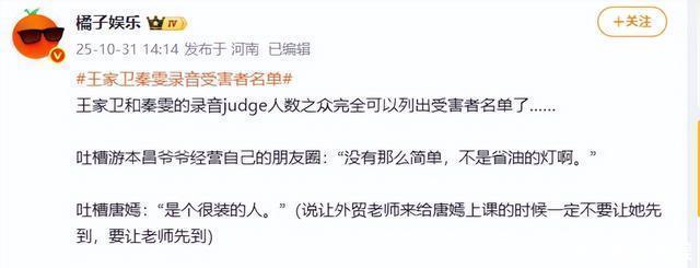 ?????? 王家卫说唐嫣“装”?????? 2025日,编剧古二放出的一段私密录音直接炸了热搜。?????? 这段录音是《繁花》拍摄时,王家卫给编剧交代工作的对话,里面他明说?????? “唐嫣呢,是个很装的人”,?????? 还特意叮嘱“别让她先到,让老师先到场铺垫”。