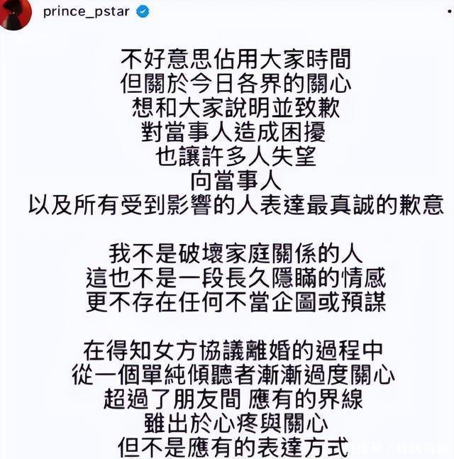 ?????? 邱胜翊发文道歉,承认自己确实越了朋友的界线。?????? 那时他听江玮琳亲口说,他们夫妻俩协议离婚,自己就关心过头了,但也仅仅如此,并不是自己要故意“破坏他们家庭”。