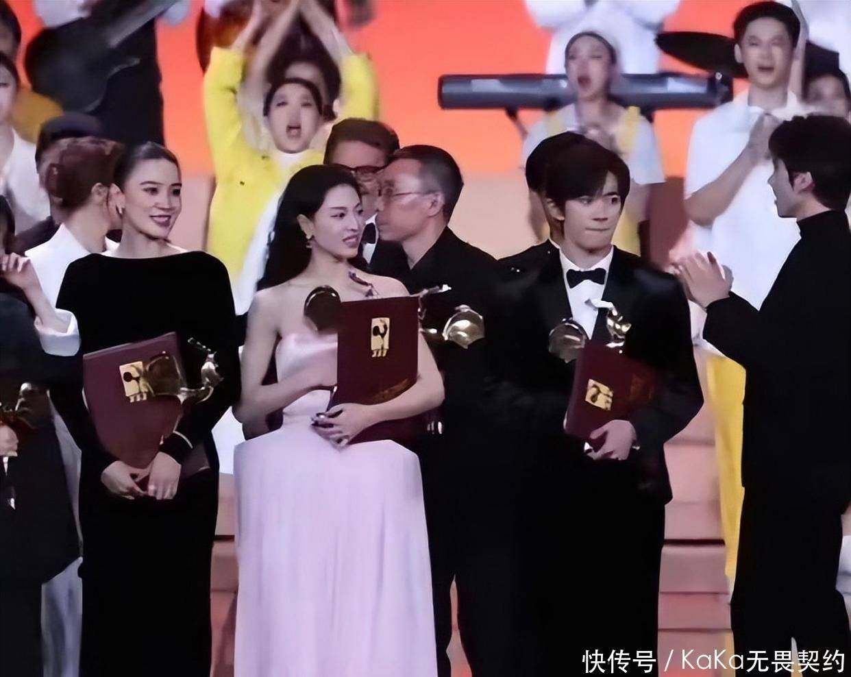 谁也没料到,第二天刚领奖,就有人爆料说她在金鸡奖上抢了C位。
