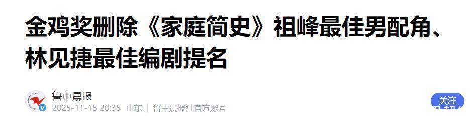 对于网友们各种猜测,现阶段《家庭简史》剧组以及金鸡奖组委会都还没有发表任何声明。