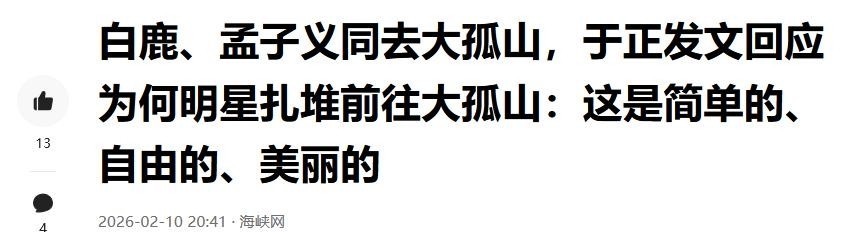 面对舆论聚焦,于正作出温和回应:他强调自己纯粹是来登山观景、呼吸山野清气,欣赏天然画卷之美。在他看来,“每个人心中都有属于自己的山”,大孤山之所以吸引人,只因其具备一种难得的质朴气质——不喧哗、不设限、不修饰。