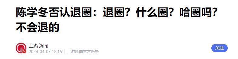 参考资料:上游新闻《陈学冬否认退圈:退圈?什么圈?哈圈吗?不会退的》
