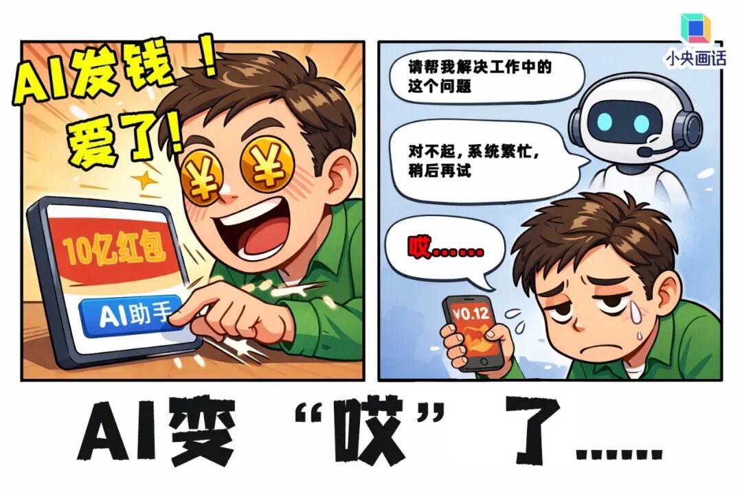 这场声势浩大、“烧钱拉新”的操作,实则是对AI时代流量入口的激烈争夺。然而,热闹背后,也伴随着用户体验“打折”:分享链接遭群友反感或屏蔽、“最高XX元”成营销噱头、系统因订单过多崩溃……从此前的移动支付、共享出行到外卖电商,“补贴换市场”的逻辑曾被反复验证,如今被复制到AI赛道,难免让用户审美疲劳,令“抢完红包就卸载”的现象屡见不鲜,一些用户还对部分“伪智能”表示失望。