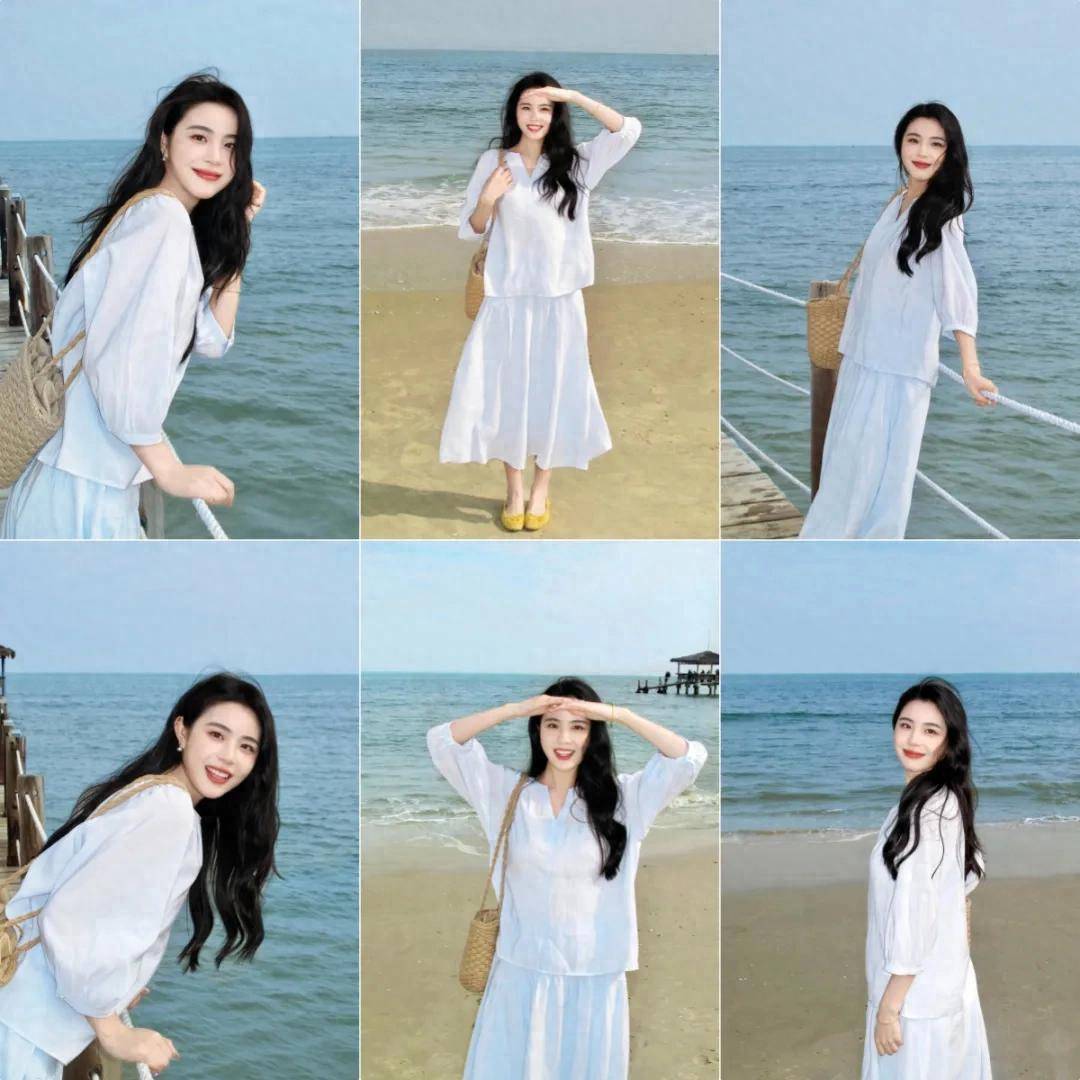 侧身对着镜头站立,身体舒展,裙摆自然垂落,无需刻意摆姿势。慢慢回头,脸上带着甜甜的微笑,眼神看向镜头。这样摆拍简约又大方,温柔感拉满,拍出来好看又漂亮,尽显女生的优雅气质。