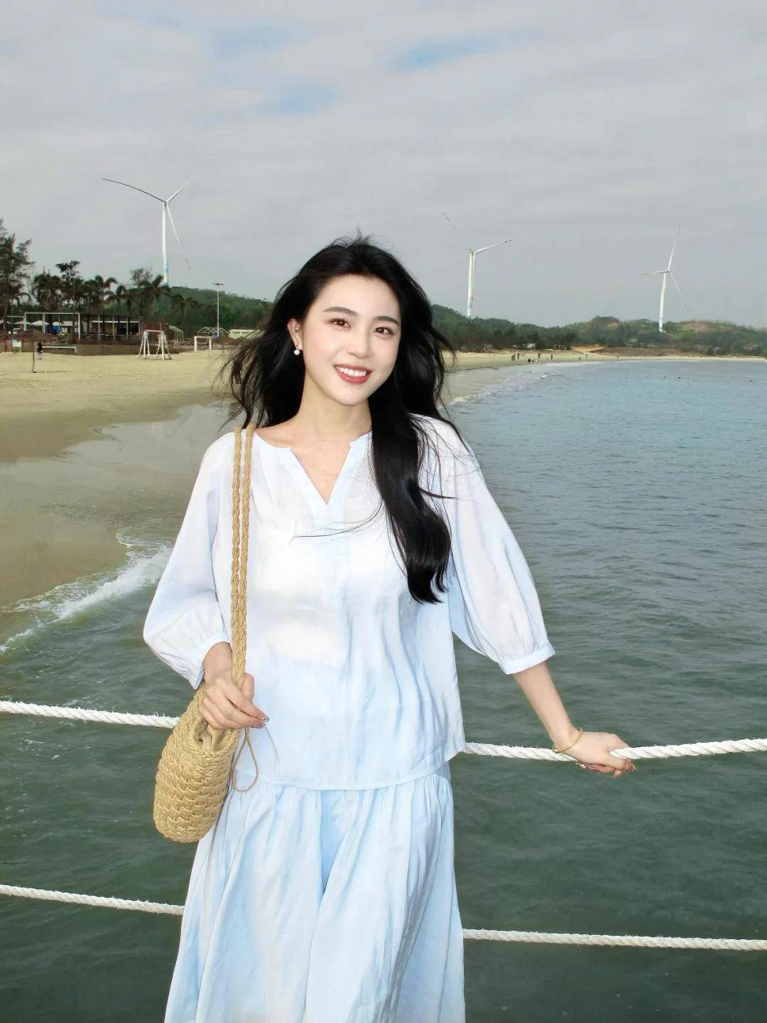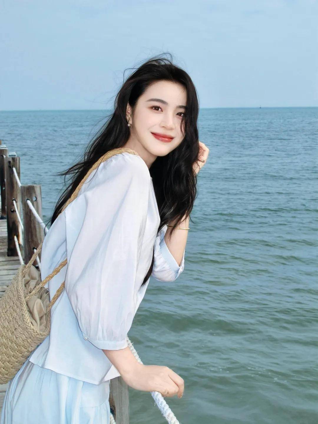 侧身站立,一只手轻轻搭在栏杆上,身体慢慢俯身,接着回头看向镜头,脸上露出大方的微笑,神情放松不拘谨。穿裙子拍照这样摆,落落大方不做作,温柔又漂亮,拍出来好看有质感,很容易出片。