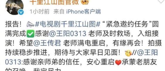 ?????? 后来随着时间的淡化,这件事在大众的眼里已经翻篇了。?????? 直到一周前,王传君突然官宣辞演新剧《千里江山图》,临时换成了王阳。