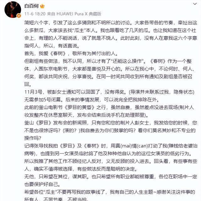 ?????? 东京电影节还没结束,白百何就开始在网上阴阳电影《春树》的主创团队。