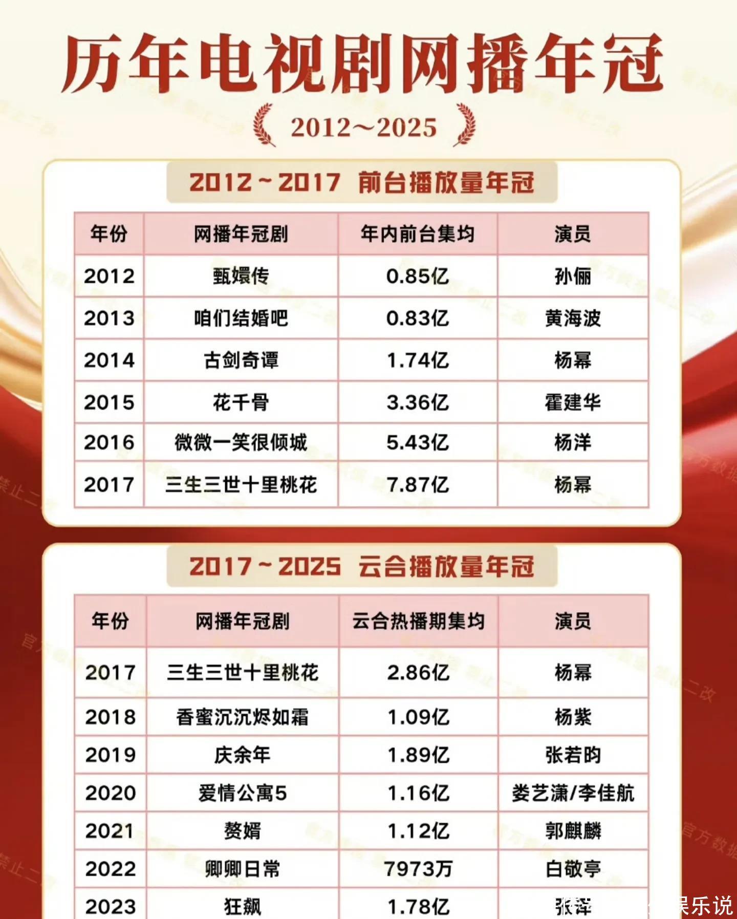 杨幂为贴合角色,她素颜出镜、体验农村生活,苦练方言,手上磨出老茧同时,这部剧创下了央八近三年收视峰值(酷云数.3535%),播放量亿