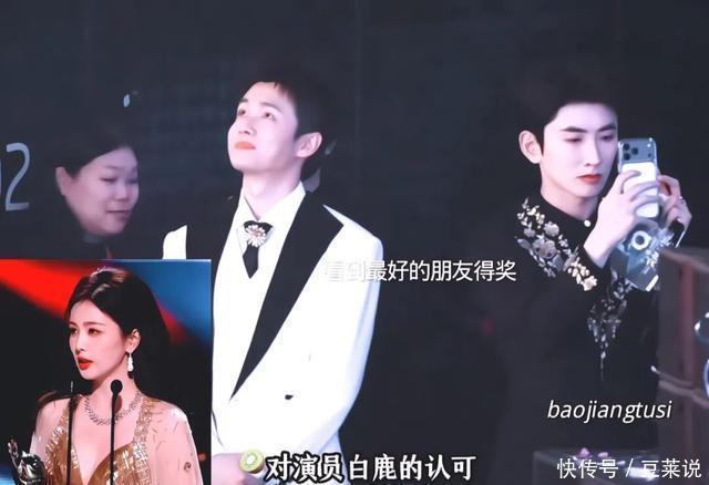 ?????? 后有剧组上台领奖,白鹿搞怪完第一反应就是看向敖瑞鹏,被镜头精准捕捉。