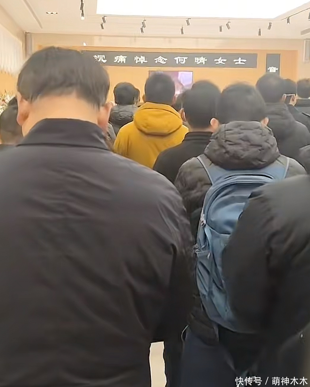 在告别式现场,可以看到“沉痛悼念何晴女士”的大字,左右两侧还有挽联,屏幕上则播放着何晴的影视画面,而告别的人群数量十分壮观,几乎是人挨人,大部分都是身着深色服饰,场面令人泪目。