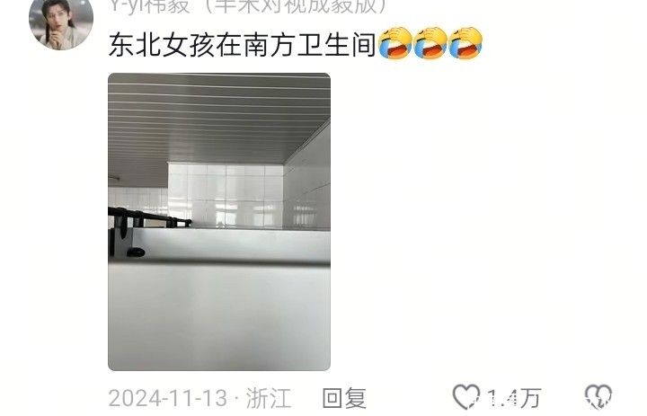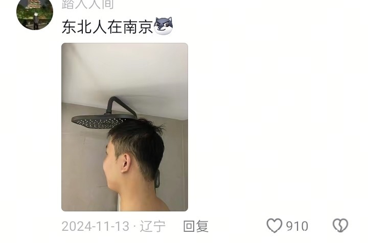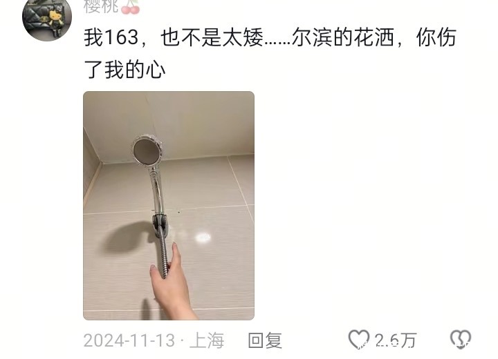 网友吐槽再也不去哈尔滨了,在哈尔滨酒店够不着浴室置物架,哈尔滨户外小摊够不着关东煮