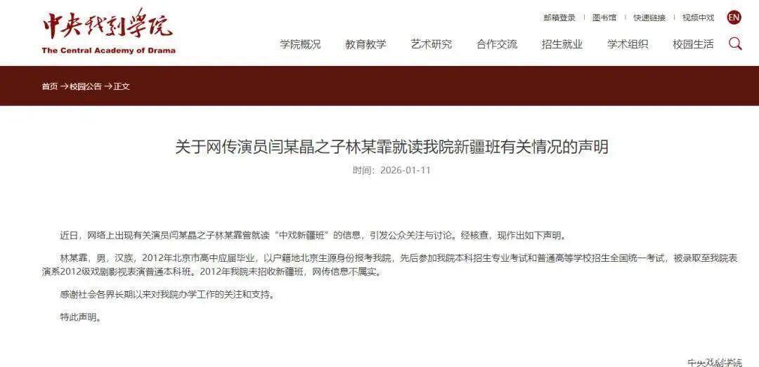这也就是说,中戏年开设了新疆班! 名考生中,少数民族考生计名,其余的是汉语言考生,而这里的汉语言考生,要有新疆学籍! 有了这篇文章,我们再看看中戏的回应和闫学晶儿子的学历问题 中戏明明年有开设新疆班中戏,却矢口否认,证明他们在这件事上撒了谎 闫学晶曾在直播间爆料自己儿子上了中戏新疆班,配合新疆网年发的这篇文章,证明林傲霏确实在高考这件事上走了捷径!
