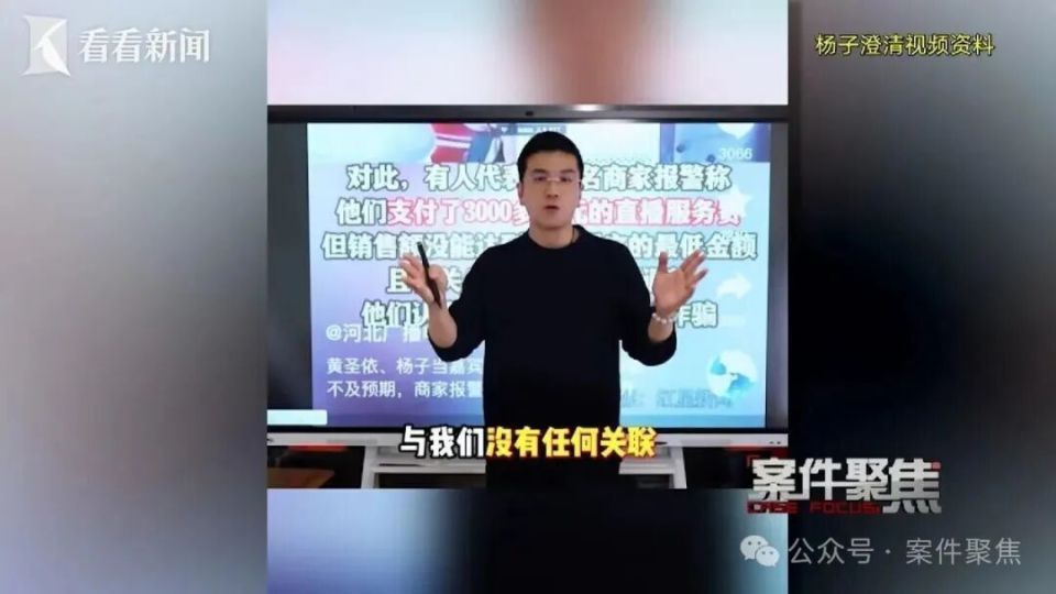 艺人杨子发布澄清视频称:“网传收取众商家三千余万元‘保量坑位费’的两家招商公司,与我们没有任何关联,我们不认识也从未接触过这两家公司的任何人员,更不知晓其招商内容及各种侵权行为。”
