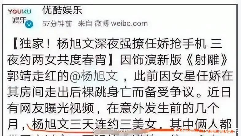 网友之所以反应强烈,核心原因在于杨旭文的过往存在争议。2017年,演员任娇在酒店坠楼身亡,知情人爆料事发当晚她与杨旭文同住一个房间。尽管警方最终认定任娇系醉酒失足意外,两人并非情侣关系,任娇父母也与杨旭文达成私下和解,但这一事件仍让刚凭借《射雕英雄传》走红的杨旭文事业遭遇重创。后续还有媒体曝光,事发前杨旭文曾连续三天约会三位女性,其中两人被带回住所,私生活混乱的评价一度伴随其多年。