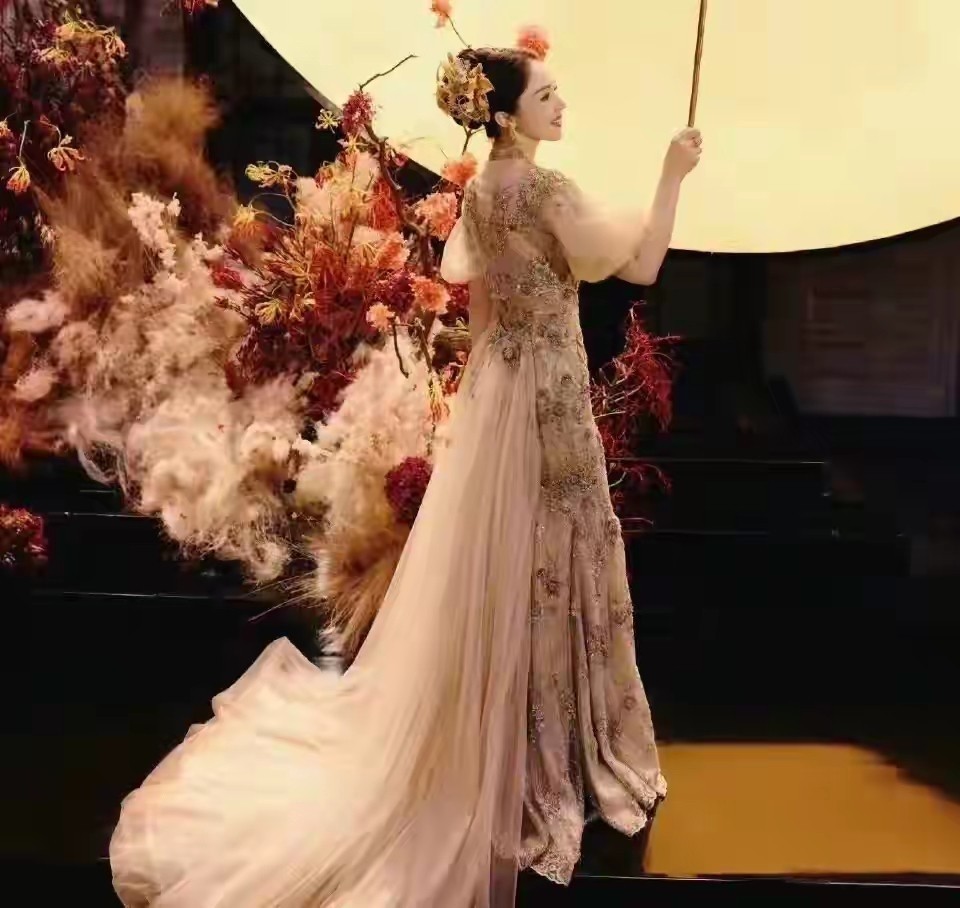 董璇为这一天倾注了满满期待,精心装扮,神情温柔。