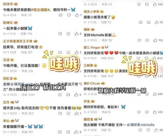 ?????? 陈妍希的《狙击蝴蝶》开播当晚,内娱罕见地出现了半个娱乐圈打call的盛况。?????? 从相年的林心如发长文助阵,年好友杨丞琳连夜宣传,再到刘诗诗、宋茜、李沁余位艺人的自发刷屏,甚至谢楠、谢霆锋等跨界好友也纷纷加入打call行列。