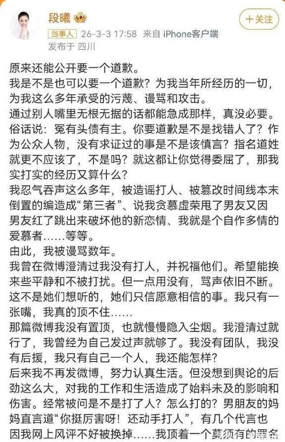 段小姐直接在网上喊话谢娜,让她出来道歉。这下谢娜没动静了,不吭声了。看到自己老婆被怼,杰哥坐不住了,站出来说话了:“我和娜娜在一起时,我是单身。现在我只专注于我的家庭和工作,用作品说话,此事不再多言?!?#35805说得倒是挺硬气。