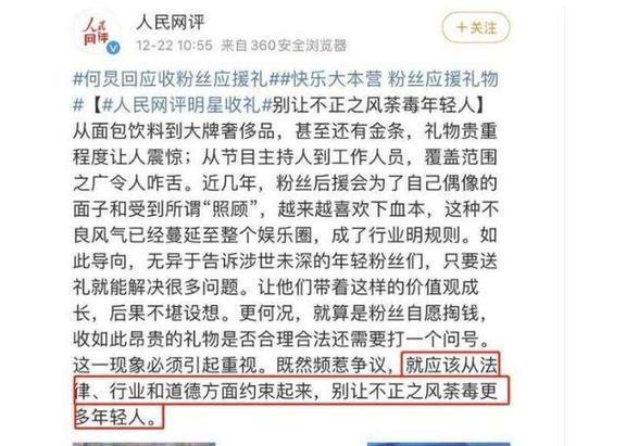 可后来《快本》越来越火,这礼物的规格也跟着水涨船高,越来越离谱,听说后来都有人直接送金条了!这哪还是粉丝互动啊,明摆着就是送钱送好处,变味儿了都。这事儿要是就这么私下里过去了也就算了,关键是人民网直接点名批评了,说这种行为就是歪风邪气,得改!