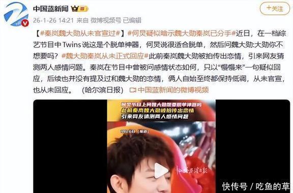 这头谢娜的事儿还没消停呢,那头秦岚的感情问题,不知怎么又把何老师给牵扯进去了,真是按下葫芦起了瓢。最近秦岚和魏大勋是不是还在一起,又成了网友热议的话题,这中间还夹杂着她跟王思聪的那些事儿,乱得很。网上好几个博主都在说,秦岚和魏大勋已经分手了。这消息虽然没官宣,但早在今年一月份的时候,何老师就在节目上不小心说漏嘴了,等于提前剧透了。