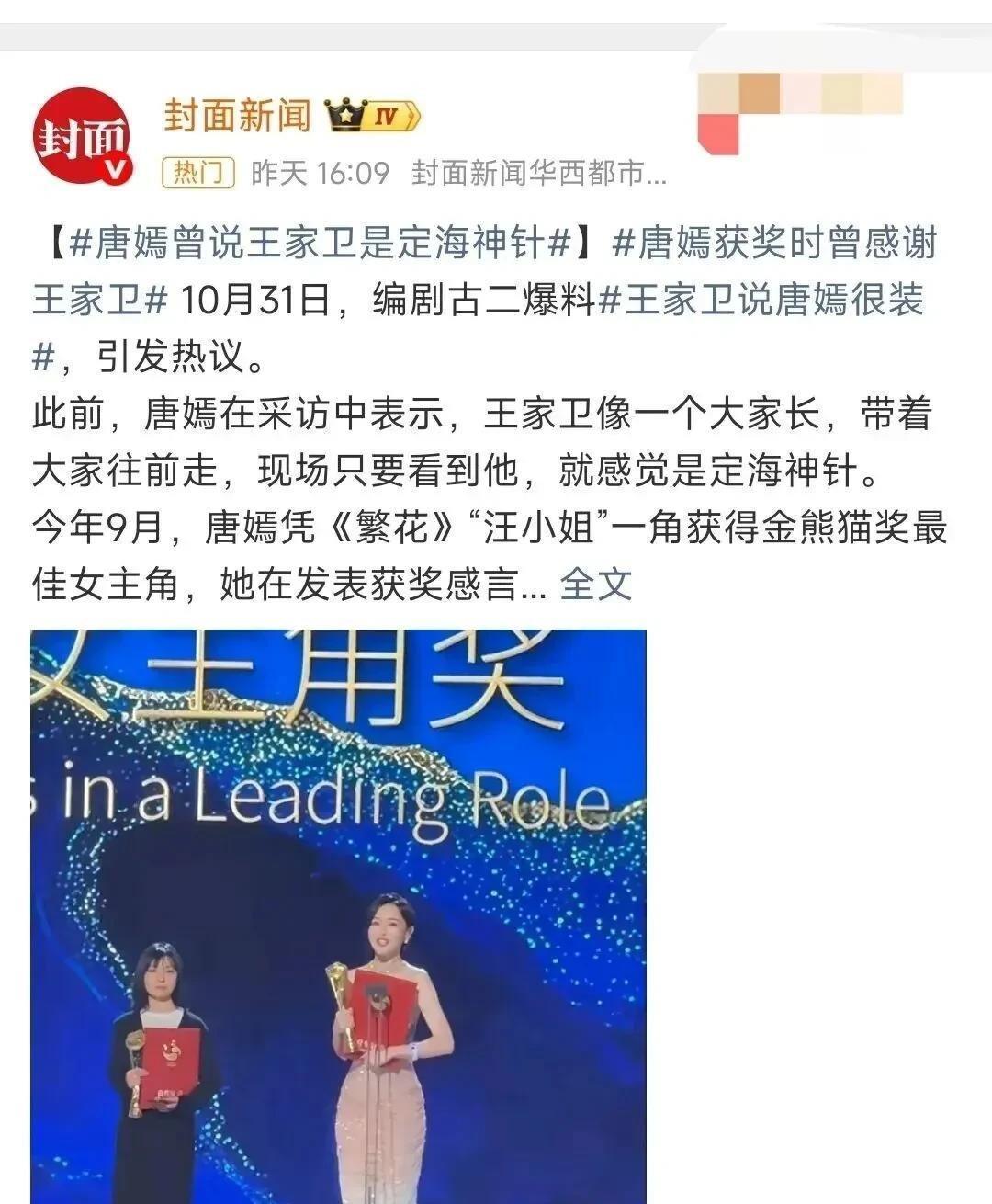 唐嫣因这个角色拿了奖,上台时还特意感谢了王家卫导演。不得不说,王家卫挑人的本事真厉害。真替唐嫣高兴,在她事业低潮时,能碰上这么有眼光的导演,还有这么棒的剧本和角色。人嘛,运气有好有坏,低谷时就专心做好自己的事,其他的就交给老天爷安排吧。