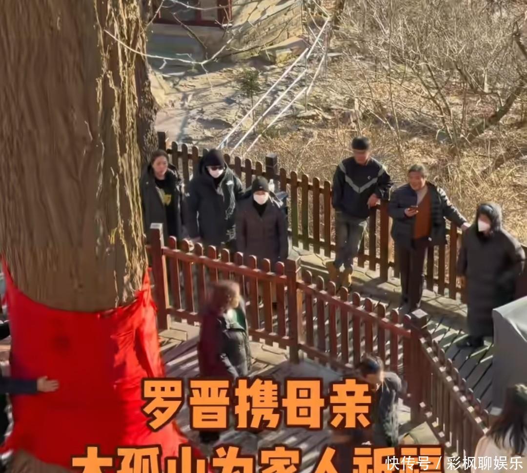 也许会有人说上面的根本就不是罗晋,但他的妈妈也是有去的,罗妈妈之前上过综艺,对比就是没错了,她和儿子一样戴着黑色帽子,罗晋时不时关切地回头看一下妈妈。